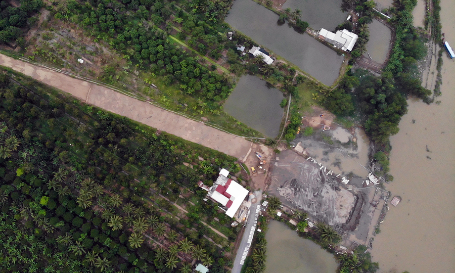 Bến phà tạm phía Bến Tre đang được khẩn trương xây dựng, hoàn thành trước ngày 15/12 nhằm giảm ùn tắc giao thông trên cầu Rạch Miễu trong dịp Tết 2021. Ảnh: Hoàng Nam