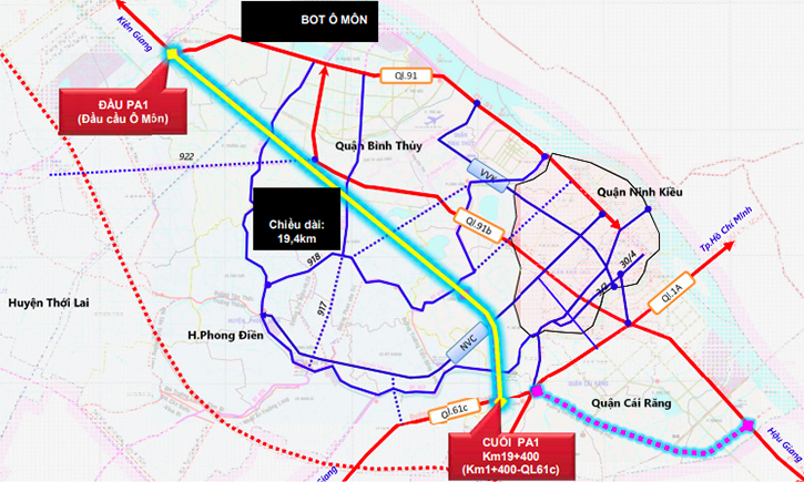 Theo thiết kế, dự án dài 19,4 km, nối với quốc lộ 91 quận Ô Môn, đi qua quận Bình Thủy, huyện Phong Điền, quận Ninh Kiều, quận Cái Răng trước khi kết nối với quốc lộ 61C.