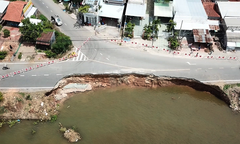 “Mực nước cao hơn ở phía bên của cabin bị hạ thấp bởi trọng lực, dẫn đến một dòng nước uốn cong và xoay như một giàn khoan. Điền nói rằng bằng chứng của một bàn chân bị gãy giống như trước khi sạt lở và vẫn còn trên mặt đất. Có những vết nứt, thậm chí trên đất. Ông Tiến cho biết hiện tại có ba giải pháp: bảo vệ bờ kè, chấp nhận sạt lở và chuyển người sau khi nghỉ hưu, san lấp mặt bằng. Tuy nhiên, giải pháp đầu tiên không nên thực hiện vì khiếm khuyết Nếu bờ biển không thể được bảo vệ, sạt lở vẫn sẽ xảy ra. Kè cũng sẽ làm trầm trọng thêm các sườn dốc và làm tăng nguy cơ sạt lở. Giải pháp thứ hai cũng khó thực hiện vì số tiền lớn, và nhiều người có nhà ở ổn định và không sẵn sàng di chuyển.- — Ông Thiện nói rằng giải pháp thứ ba là điều chỉnh tốc độ dòng chảy. Nhưng giải pháp này liên quan đến một loạt vấn đề cần xem xét. Đầu tiên, nó đòi hỏi chuyên môn thiết kế rất cao. Đặc biệt, có thể cần phải xây dựng một dòng chảy dưới đáy sông. Kỹ thuật, thay vì chỉ đơn giản là đào cát để tạo ra các kênh sông mới. Đồng thời, cần xem xét khả năng thu gom cát và lấp các kênh thưa thớt mới.