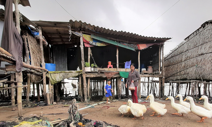 Sạt lở làm mất hết đất chân các nhà dân ở cửa sông Vàm Xo, thị trấn Dartme, nơi có Ngọc Hiển. Ảnh: Trung Dũng