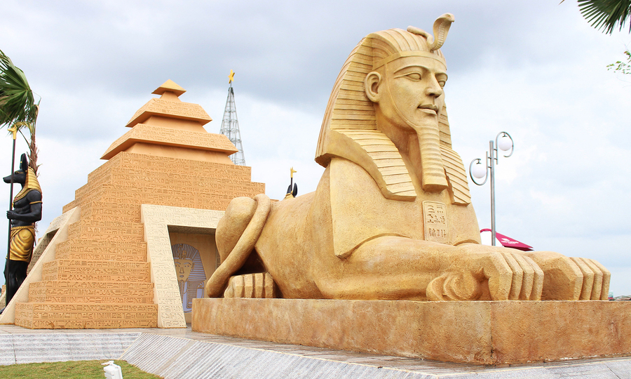 Như Ý (từ phải sang) được chụp ảnh mô phỏng tượng thần mặt trời ở Rhodes (Hy Lạp). Bức tượng ban đầu cao 34 m được tạc từ đồng và cột sắt, được xây dựng vào năm SCN Cách đây 280 năm, nó nằm ở cảng Mandelaki trên Đảo Rhode. Tuy nhiên, do trận động đất, 56 năm sau tượng thần mặt trời ở Rhode Island bị đổ sập, người dân địa phương lo sợ sẽ xúc phạm thần mặt trời nên không dám dựng lại tượng. Là một con người, tôi rất vui vì thành phố này có thêm nhiều điểm tham quan độc đáo và phát triển như vậy. Ở đây rất sống động, đâu đâu cũng có người, người ta cười nói, chụp ảnh. Như Ý cho biết: “Khi mới đến, mình không biết tên tất cả các kỳ quan cổ đại ở công viên này, sau khi đi du lịch, mình sẽ bắt đầu tìm hiểu thêm về chúng.” Tại Alexandria, Ai Cập, nổi tiếng 1500 năm tuổi. Alexandria lịch sử được thiết kế để hướng dẫn các con tàu ở Alexandria một cách an toàn. Ngọn hải đăng Alexandria được coi là tiêu chuẩn cho tất cả các ngọn hải đăng ba tầng trong tương lai: phần dưới là hình vuông với lõi trung tâm, phần giữa là hình bát giác, và phần trên là hình tròn. Tòa nhà đã trải qua nhiều đợt bảo trì để sửa chữa những thiệt hại do trận động đất gây ra, và nó bị sập hoàn toàn vào năm 1303.