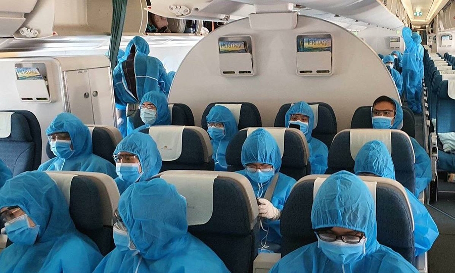 Công dân Việt Nam bay trở về từ châu Âu hôm nay 21-22 / 7 Ảnh: Bộ Ngoại giao — -Cưỡng chế nghiêm ngặt các biện pháp an toàn, an ninh và vệ sinh trong suốt chuyến bay. Sau khi máy bay hạ cánh xuống sân bay Van Den, người dân ngay lập tức bị giám sát y tế và cách ly theo yêu cầu.