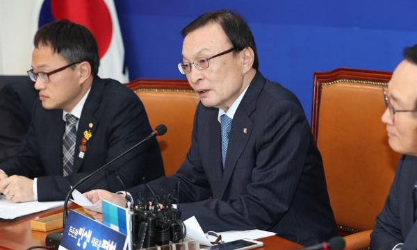 Chủ tịch Đảng Dân chủ cầm quyền, Lee Hae Chan (giữa), đã có bài phát biểu nhậm chức vào ngày 10/12 nhân kỷ niệm 100 năm ngày thành lập. Ảnh: Yonhap News Agency.