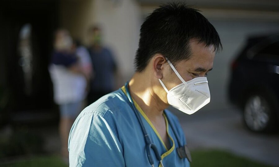 Bác sĩ nam không mệt mỏi thường đi khám bệnh.Ngay cả sau khi phòng khám của anh ấy đóng cửa lúc 6 giờ chiều, nó vẫn trong xanh. Vào những ngày làm việc. Phòng khám đóng cửa lúc 2:00 sáng Chủ Nhật. Ông Võ đã cung cấp thức ăn miễn phí cho một người bị nhiễm CoV tại nhà của ông ở Calexico vào ngày 23/7. Ảnh: AP