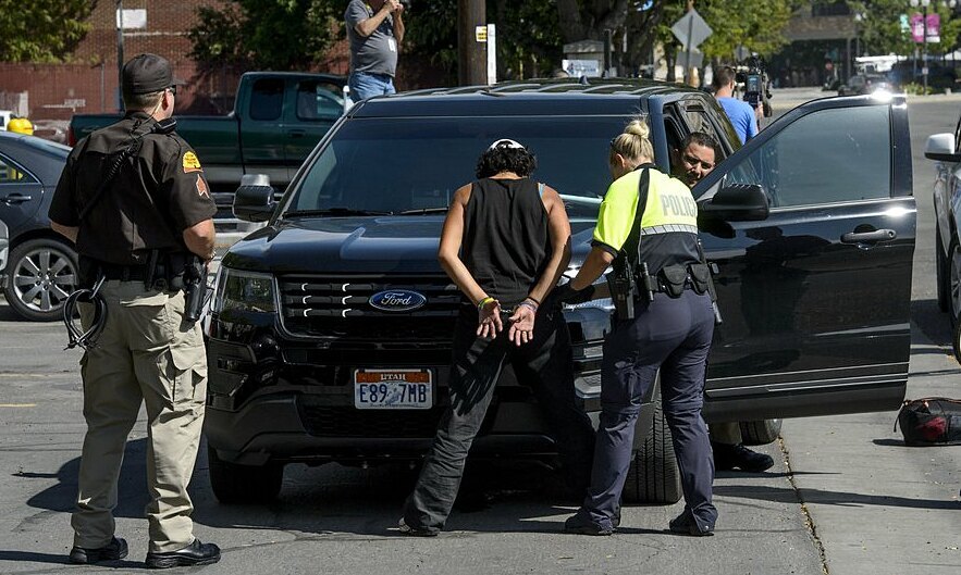Tháng 8/2017, cảnh sát đã bắt giữ một người vô gia cư ở Thành phố Salt Lake. Ảnh: Salt Lake Tribe-Theo tài liệu mới của cảnh sát, vào ngày bị khởi tố, Ruan đã đột nhập vào Ngân hàng Zion, đưa cho nhân viên thu ngân một tờ tiền, đe dọa cầm súng và yêu cầu chuyển tiền. Ruan sau đó đã đánh cắp một số tiền không xác định.